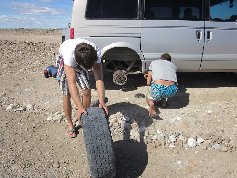 We took it easy and managed to roll into Perito Moreno after an hour and a half on our spare. It was about 7pm, and we asked around for tires. There was one tire-repair shop and one hardware store, which sold tires. None of the six models of tire they had on hand were the right size for our car. “You drive something other than a Toyota Hilux pickup truck?” Nobody seemed to have any used tires of this size lying around either.