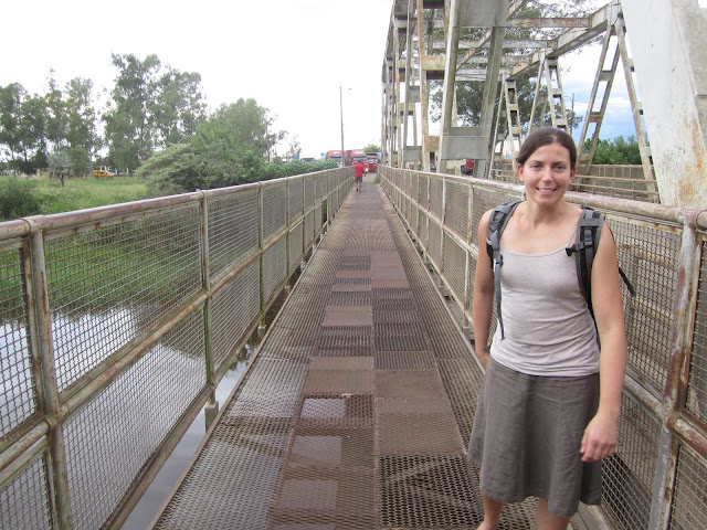 The border crossing itself was a flashback to Central America. It was hot and humid, and the pavement at the border was potholed to the max and covered in mud. A long disorderly jumble of trucks waited to cross. Touts, money-changers, and other sketchy-looking people rode around on rusty bicycles through the dirt and tried to peddle various customs services. A collection of trailers and run-down buildings with dirty service windows housed the customs and immigration personnel. The bridge across the border was probably one of the sketchiest of the whole trip – the grated metal bridge surface was completely rusted and falling apart, and broken through in many sections. It was basically necessary to walk on the support beams, as stepping on the grate between them meant risking falling through and into a tributary of the Rio Paraguay.